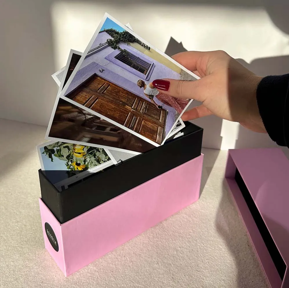 Bewahre deine Lieblingsfotos in unserer stilvollen Memory Box auf. Mit einer Soft-Touch-Laminierung gegen Kratzer und genug Platz für alle Fotogrößen bis XL. Die perfekte Lösung, um ein ganzes Jahr klikkie Fotos aufzubewahren.